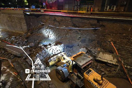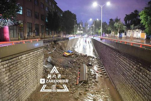 14 日 21 时,位于西大直街与北京街交口的北京街地道桥哈尔滨国展一侧,发生辅道挡墙滑塌,滑塌挡墙长约 30 米。